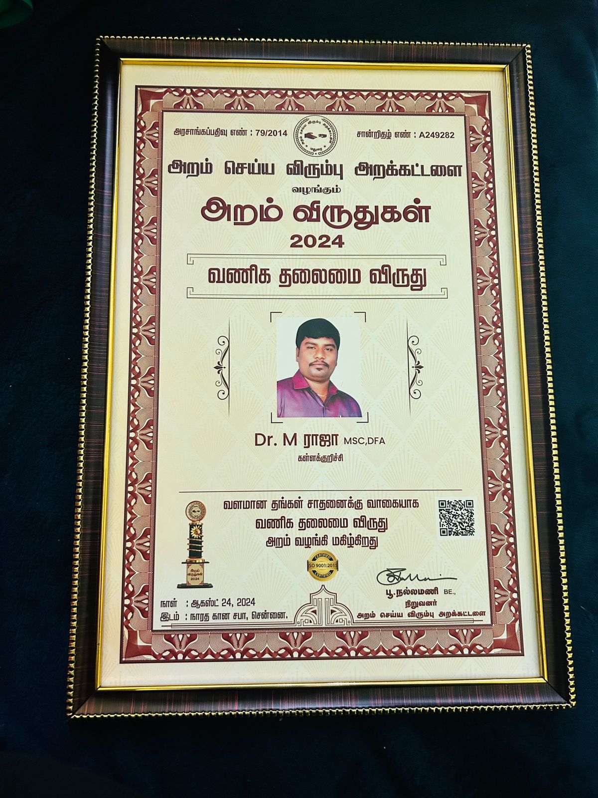 Doctor of Business from Oxfaa University Government Service Award and Honor presented by Aram Viruthukal (Virtue Awards) 2024 for Outstanding Leadership Under Dr. Raja's leadership, Krish Health Care has been empowering healthcare for over a decade. His innovative approach and dedication to improving patient outcomes have solidified the company's position as a leading provider of healthcare services in India.